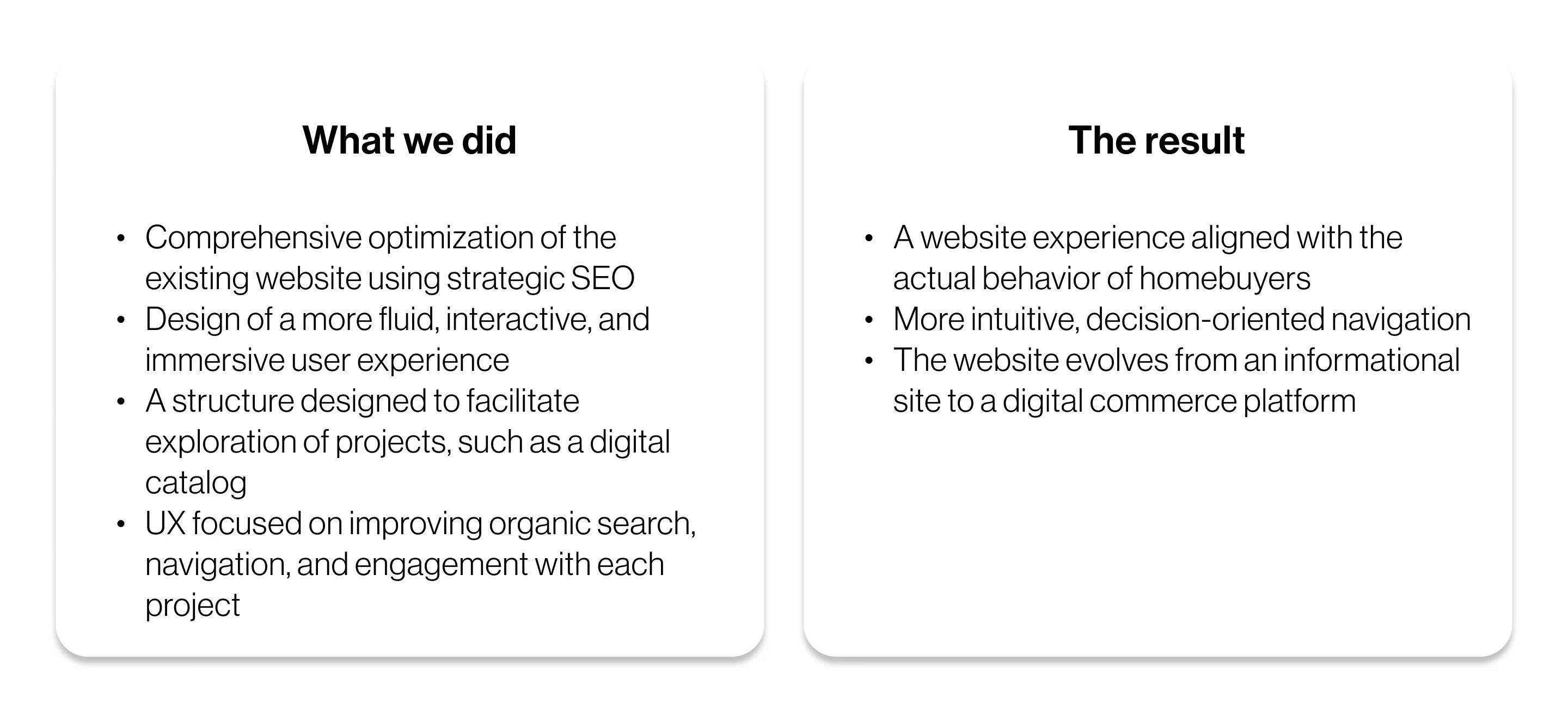 The challenge was to transform the page experience into a real estate e-commerce: